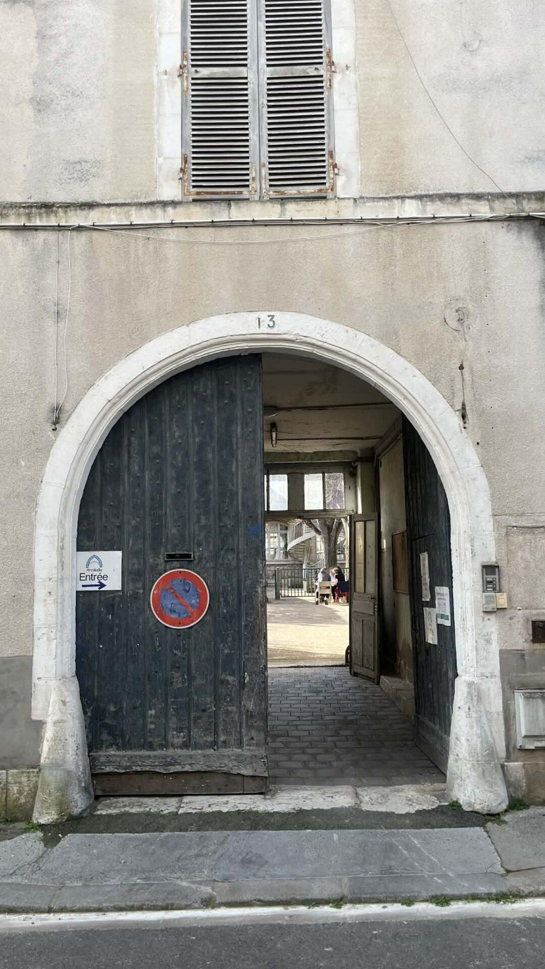 Notez que l’entrée se fait par le portail vert, à quelques mètres de la porte du bâtiment, puis tout de suite à droite dans la cour. (cf photos : photo portail vert, photo entrée dans la cour)